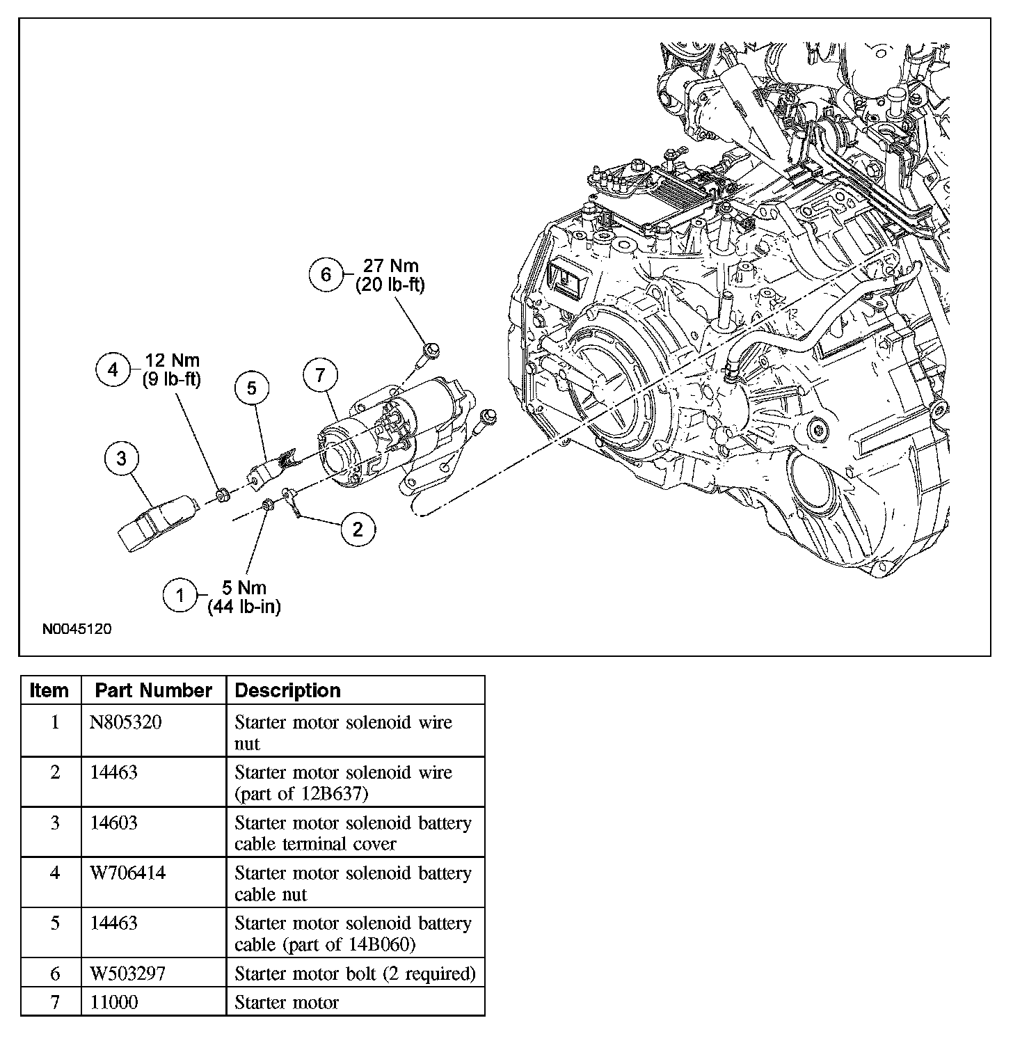 WARNING: Always disconnect the battery ground cable at the battery before disconnecting the starter motor battery terminal lead. If a tool is shorted at the starter motor battery terminal, the tool can quickly heat enough to cause a skin burn. Failure to follow this instruction may result in serious personal injury.