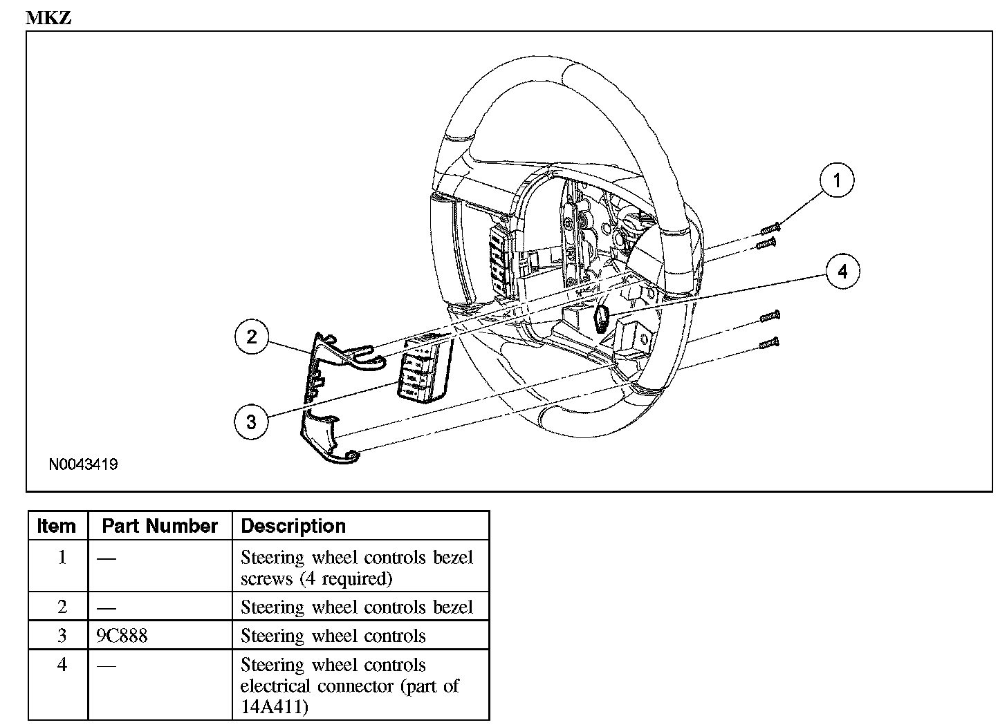 2. Remove the 4 screws and the steering wheel controls bezel.