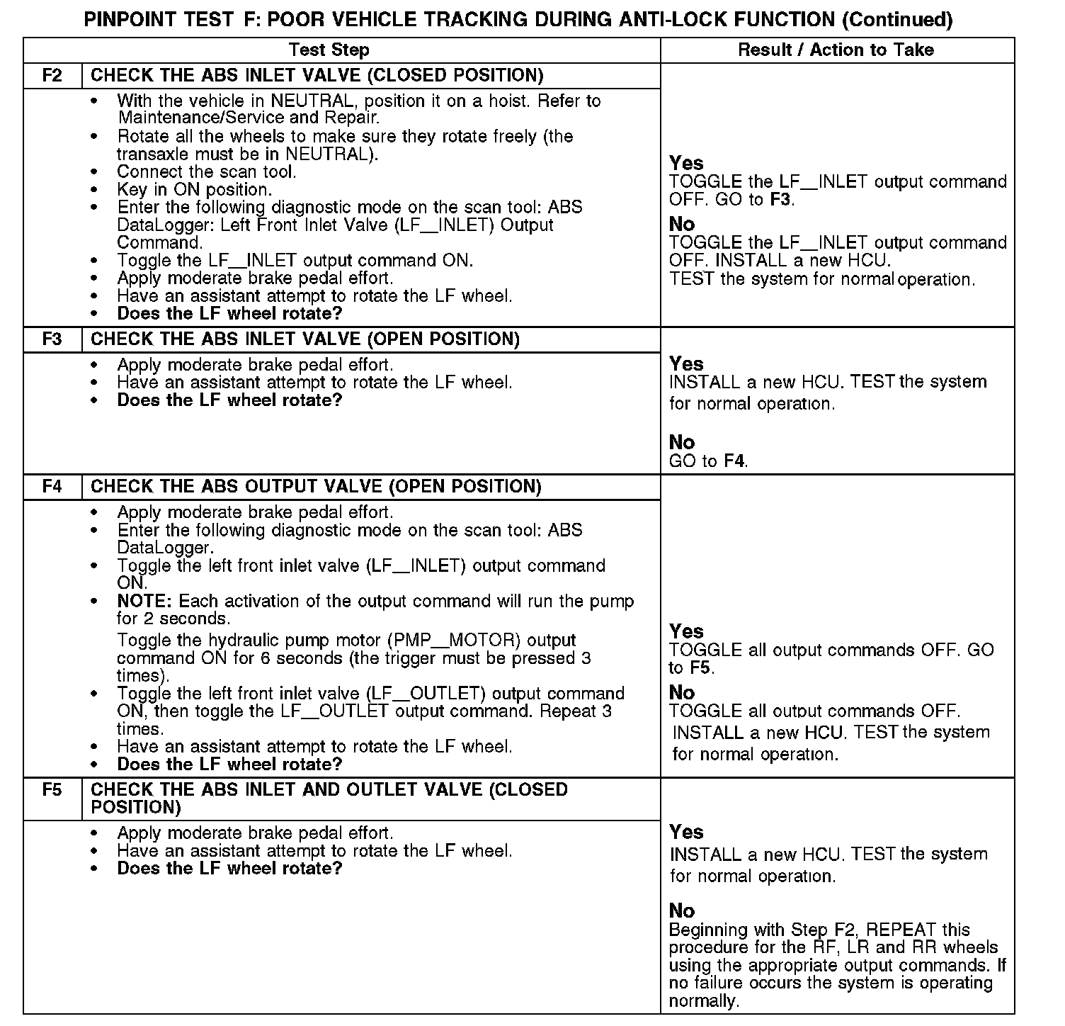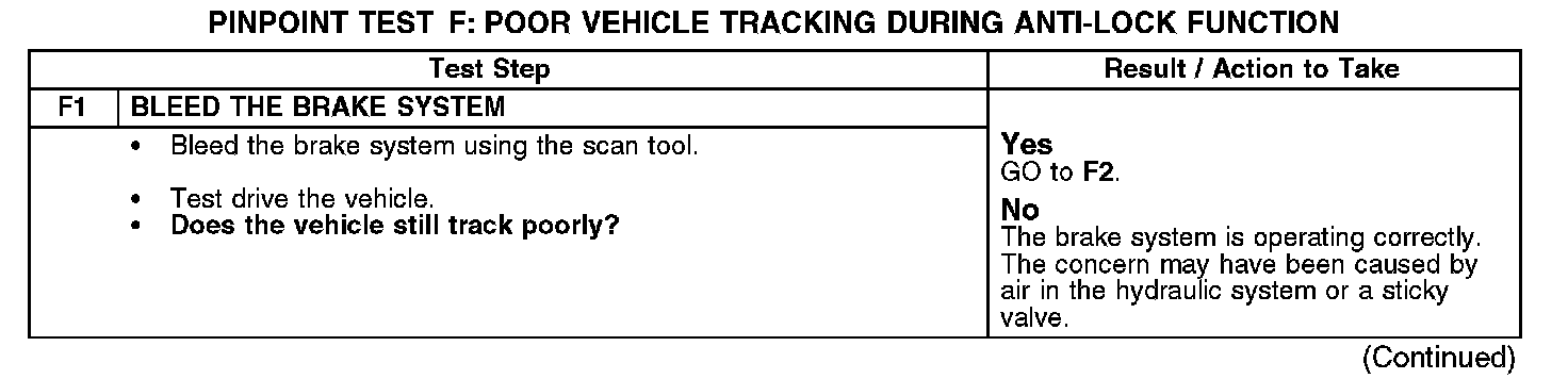 Pinpoint Test F: Poor Vehicle Tracking During Anti-Lock Function