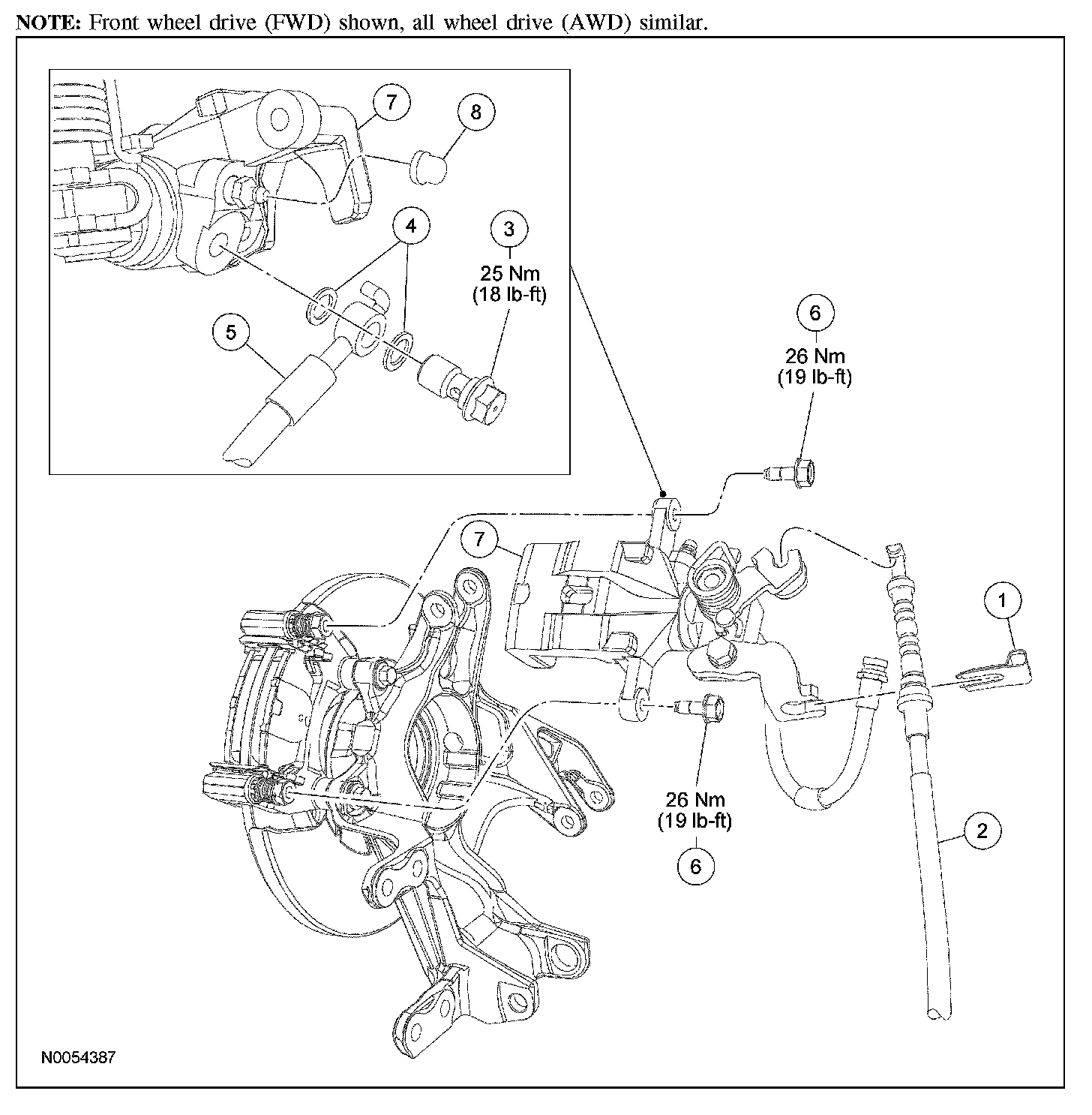 NOTE: Front wheel drive (FWD) shown, all wheel drive (AWD) similar.