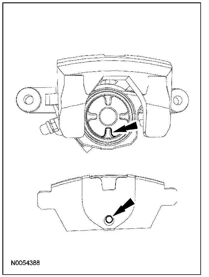1. Position the notch in the caliper piston so that it will correctly align with the pin on the backside of the inboard brake pad.