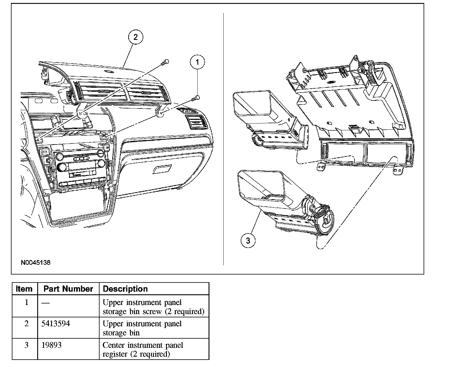 2. Remove the 2 upper instrument panel storage bin screws.