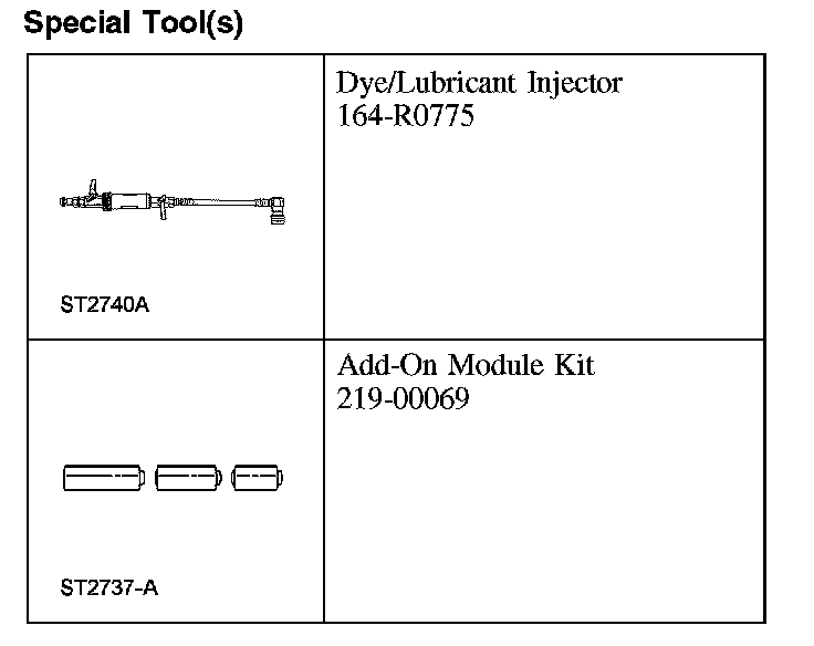 2. Assemble the dye/lubricant injector using the correct adapters to match the amount of refrigerant compressor oil to be injected.