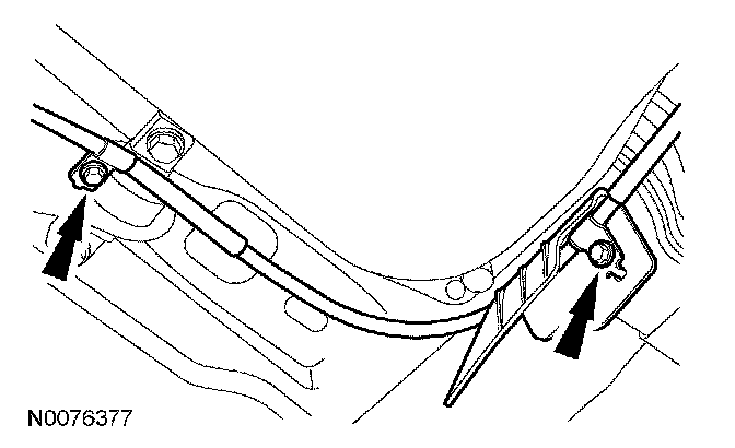 Remove the 2 bolts and position the LH rear parking brake cable assembly aside.