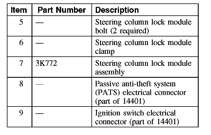 ^ To install, use new steering column lock module bolts and tighten until the heads of the bolts shear off.
