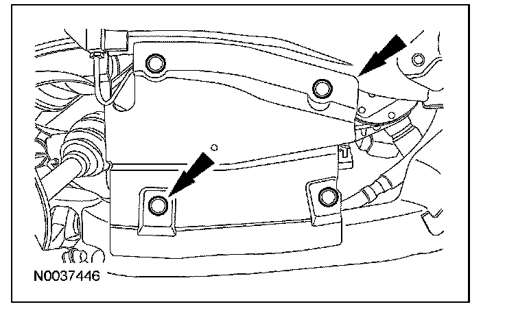9. If equipped, remove the bolts and the underbody splash shield.
