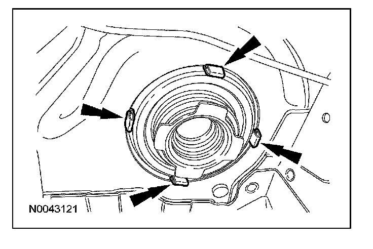 15. CAUTION: The steering gear/dash seal must be fully seated in the steering gear valve tower groove before the retaining clips are fully engaged into the body. If the steering gear/dash seal is not seated to the steering gear valve tower groove and the clips are not fully engaged to the body, water and foreign material may enter the passenger compartment, and damage the vehicle interior.