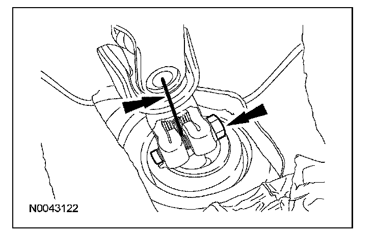 5. CAUTION: Do not allow the steering column to rotate while the steering column shaft is disconnected from the steering gear or damage to the clockspring may occur. If there is evidence that the steering column has rotated, the clockspring must be removed and recentered. For additional information, refer to Air Bag Systems.