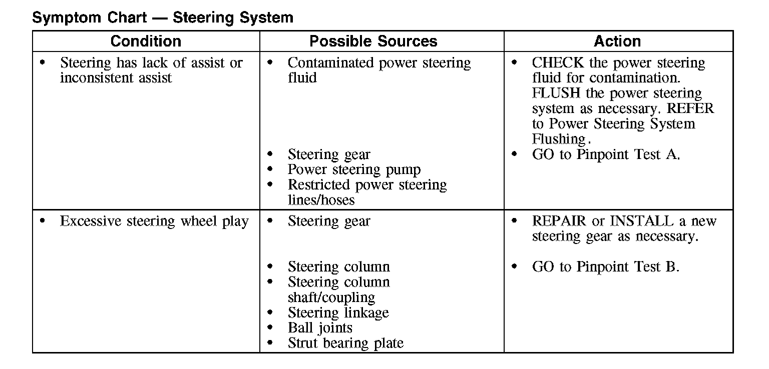Symptom Chart - Steering System (Part 1):