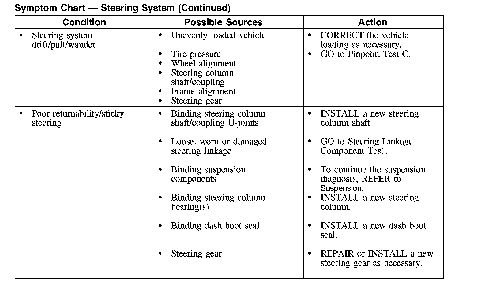 Symptom Chart - Steering System (Part 2):