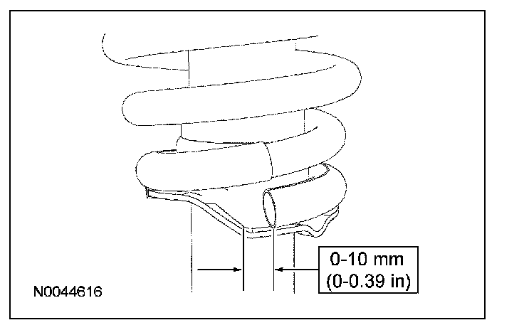 11. NOTE: Before tightening the shock absorber rod nut, position the end of the spring within 0-10 mm (0-0.39 in) of the step on the spring mount.