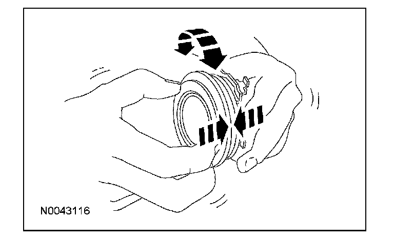 ^ Rotate the bearing while applying pressure in the axial direction. If the bearing feels rough, sticks or has excessive resistance, install a new bearing.