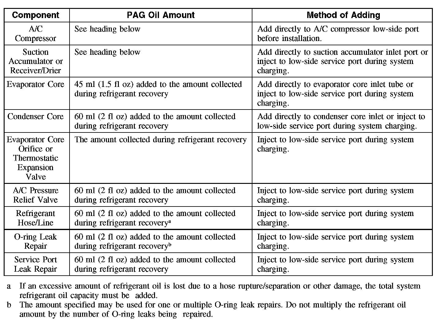 - This refrigerant oil adding method is to be used when a new A/C compressor only has been installed. If a new suction accumulator or receiver drier and evaporator core orifice or thermostatic expansion valve (TXV) have also been installed due to system contamination, refer to the appropriate heading.