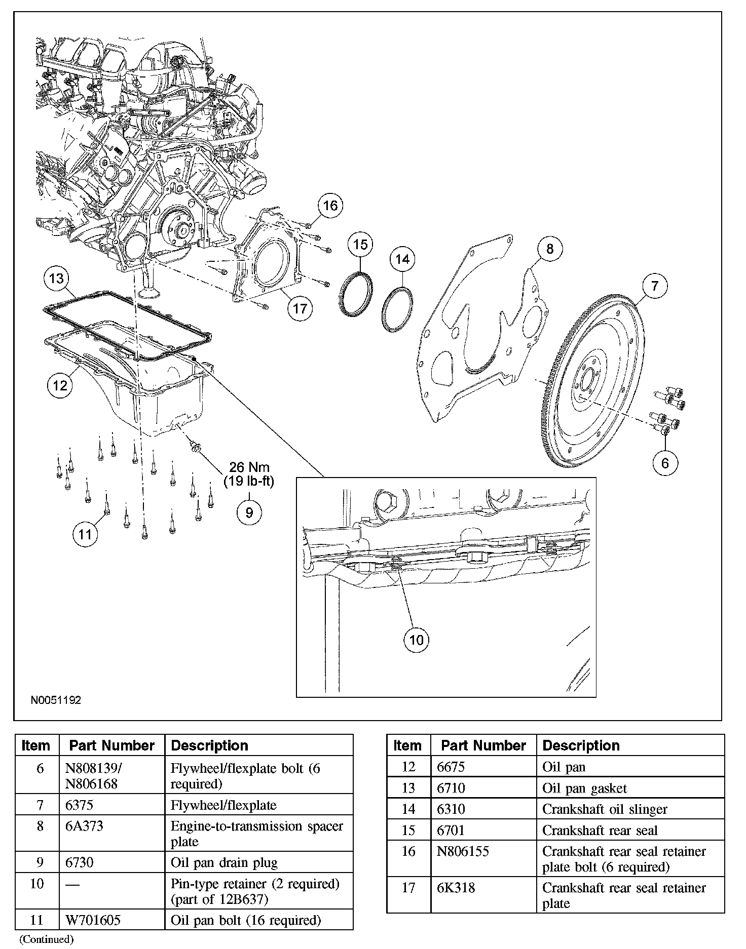 Lower End Components - Exploded View, Flexplate, Flywheel and Crankshaft Rear Seal (Part 2):