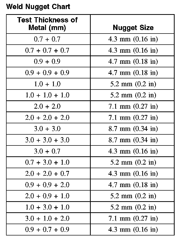 Weld Nugget Chart: