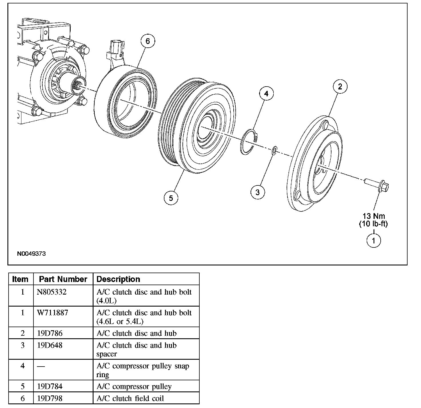7. CAUTION: Do not use air tools. Damage to the A/C clutch field coil or A/C compressor may result.