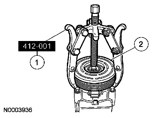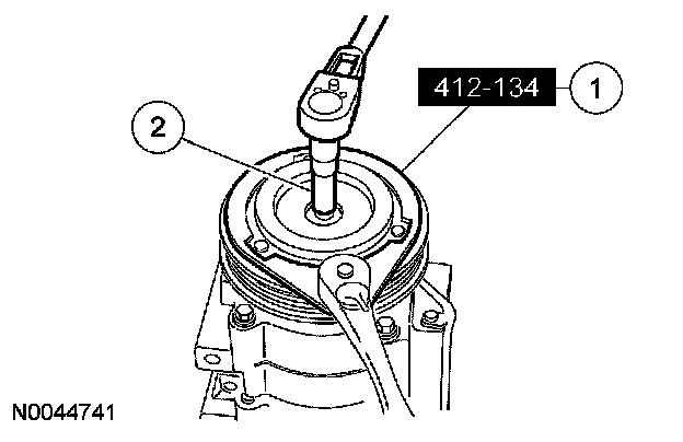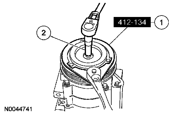 2 Place the special tool on the A/C clutch field coil.