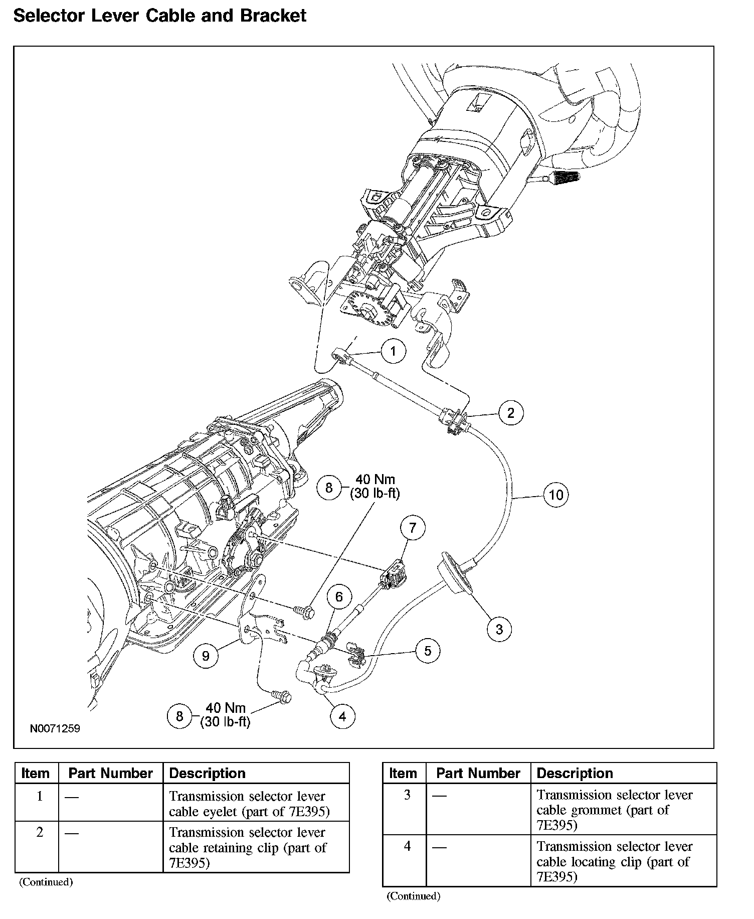 Selector Lever Cable and BracketSelector Lever Cable And Bracket (Part 1):