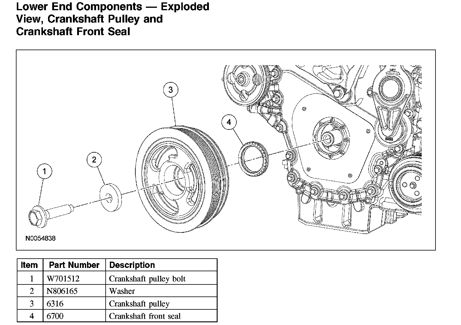 Lower End Components - Exploded View, Crankshaft Pulley And Crankshaft Front Seal: