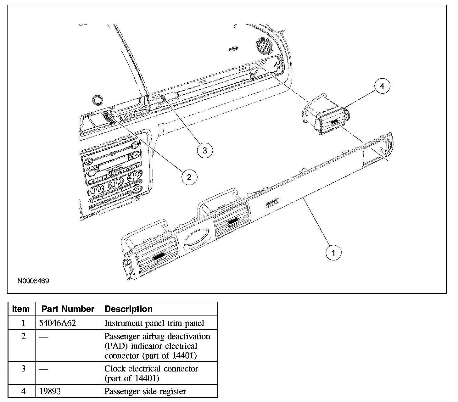 3. Disconnect the passenger airbag deactivation (PAD) indicator electrical connector.