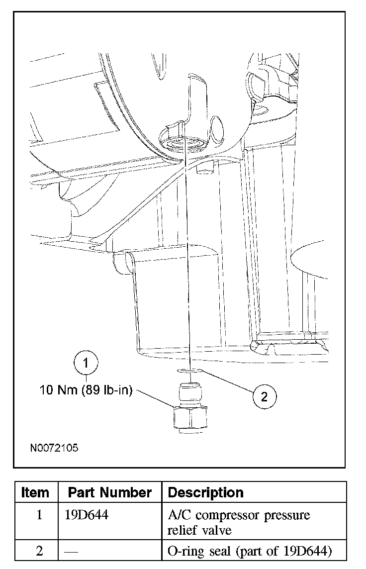 3. Remove the A/C compressor pressure relief valve and O-ring seal.
