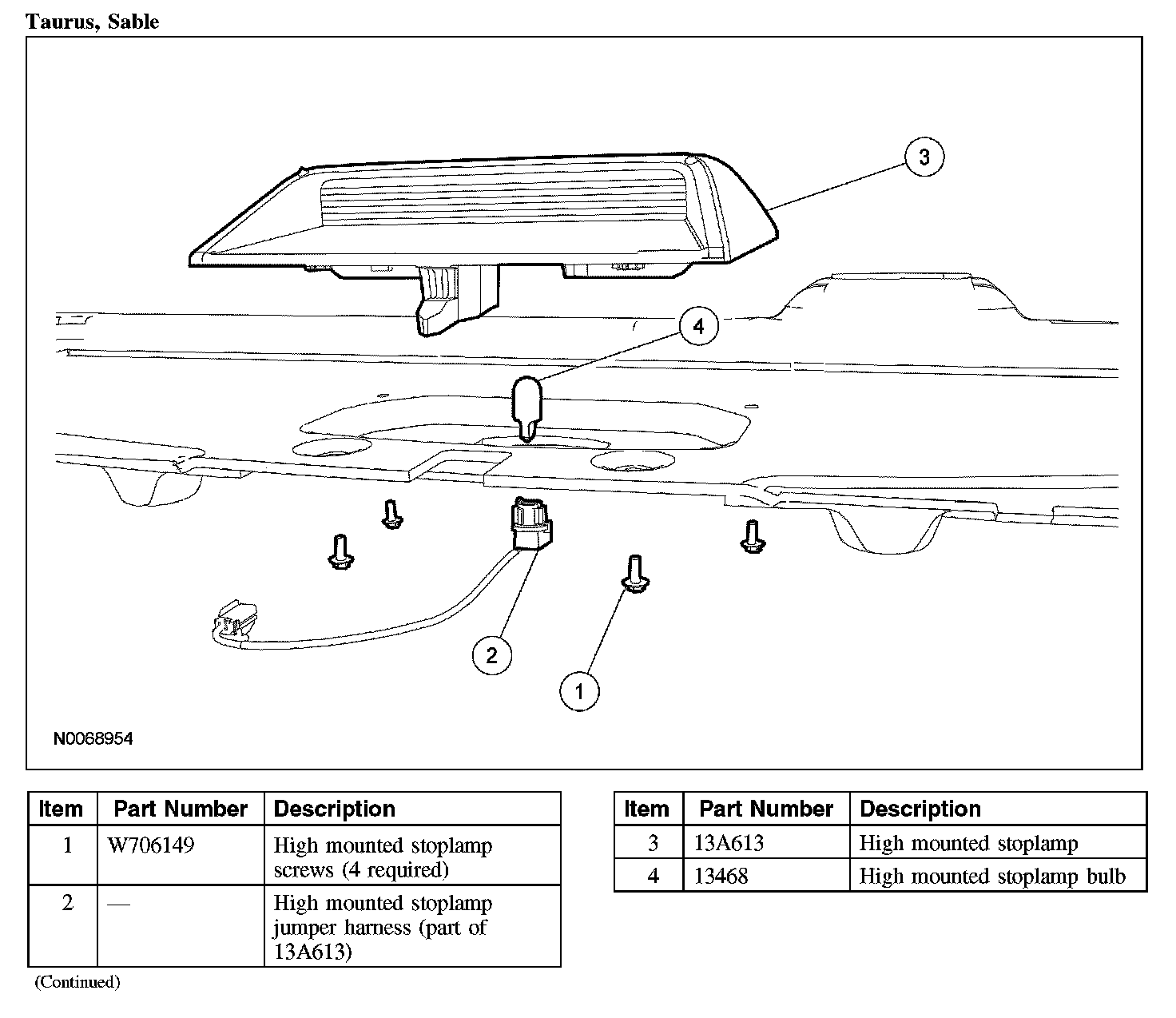 HIGH MOUNTED STOPLAMPTaurus, Sable: