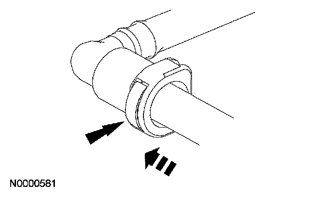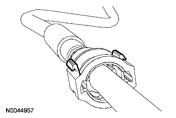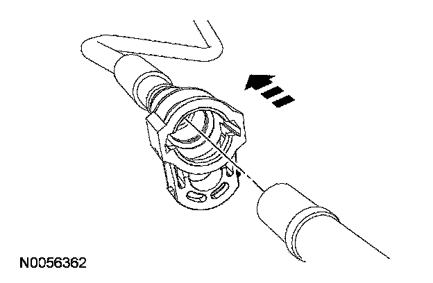 2. NOTE: When reusing liquid or vapor tube quick connect couplings, make sure to use compressed air to remove any foreign material from the retaining clip area before disconnecting from the tube. Apply clean engine oil to the end of the tube before connecting the quick connect coupling.