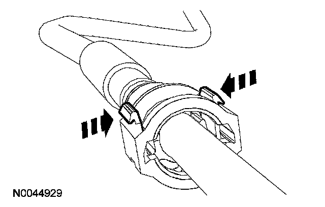 2. Squeeze the quick connect coupling retainer locking tabs to release the locking mechanism.