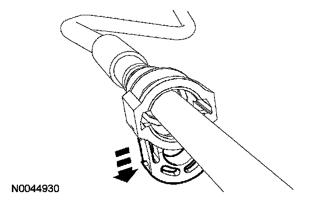 Depress the retainer clip and disconnect the quick connect coupling from the tube.