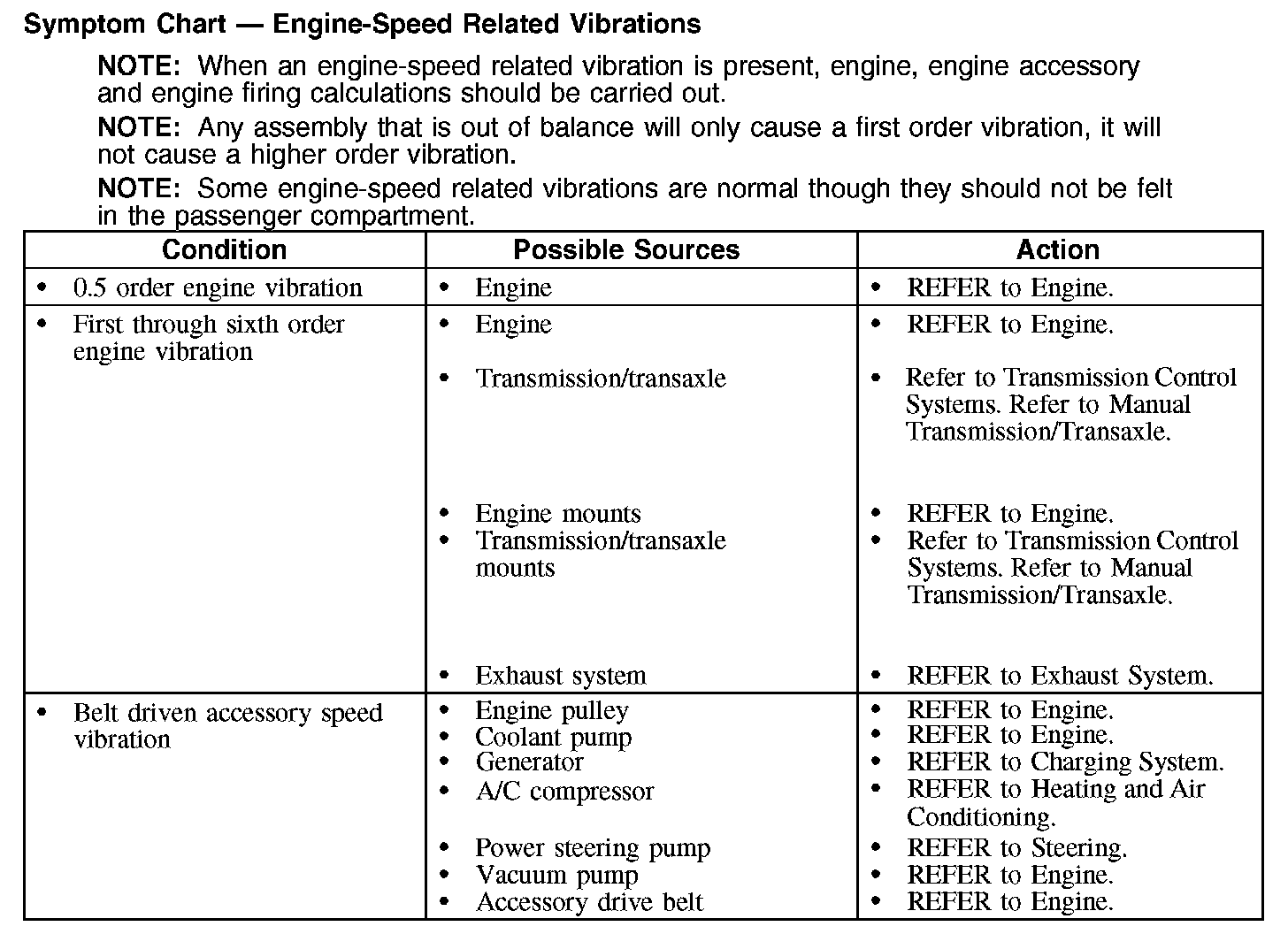 Symptom Chart - Engine-Speed Releated Vibrations:
