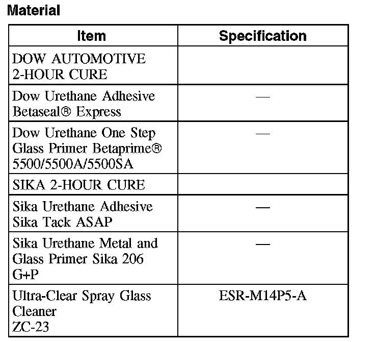 - Be sure to use the same brand and cure-rate products for the adhesive and primer. Do not mix different brands of urethane and primer. Refer to the Material Chart in this procedure.
