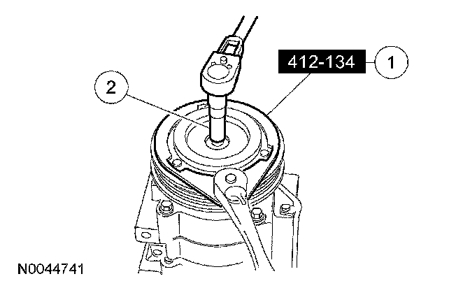 6. CAUTION: Do not use air tools. Damage to the air conditioning (A/C) clutch pulley or A/C compressor may result.