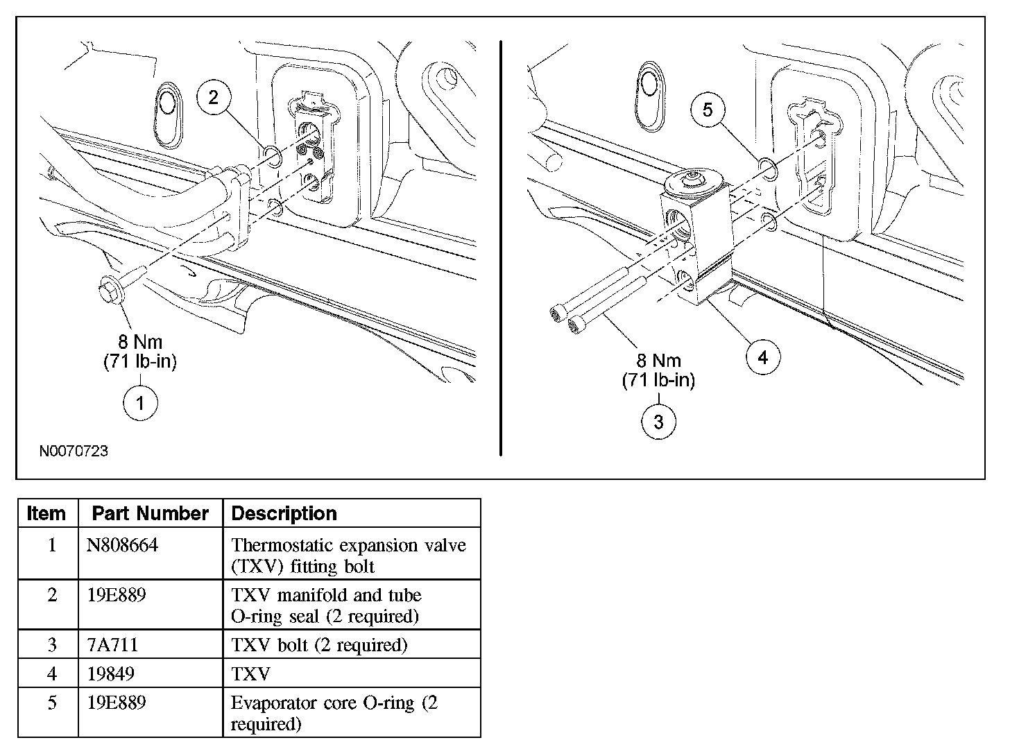 3. Remove the thermostatic expansion valve (TXV) manifold bolt.