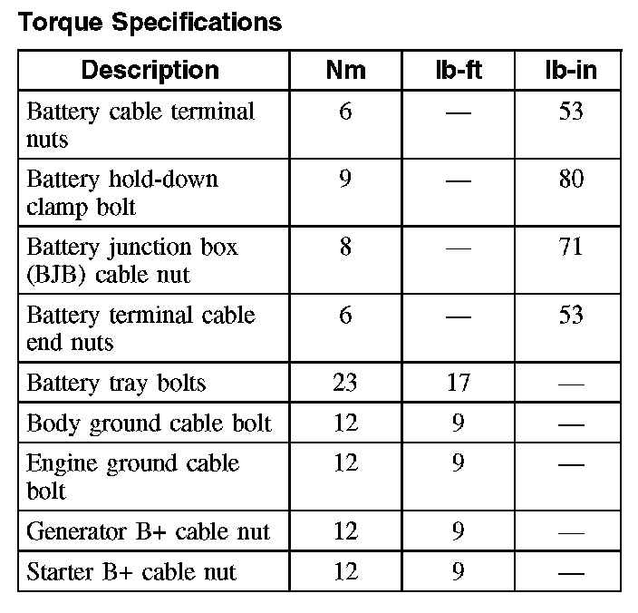 Torque Specifications: