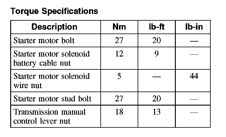 Torque Specifications: