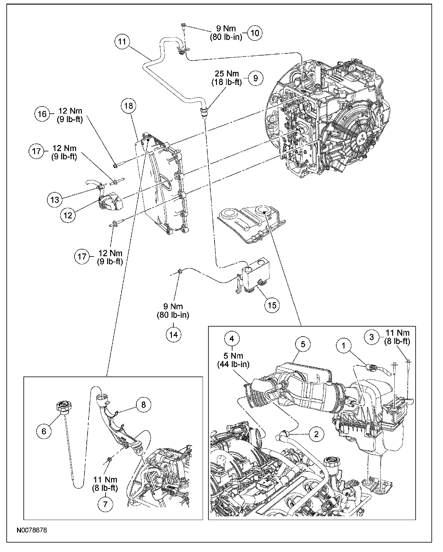 8. Tighten the transmission fluid cooler tube fitting.