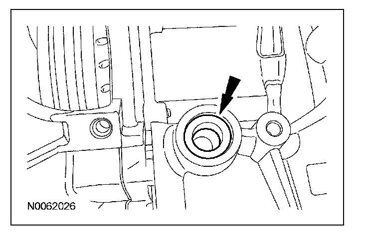 13. Inspect the transaxle case to make sure that the transmission fluid cooler tube seal and backing ring were removed with the transmission fluid cooler tube and are not stuck in the transaxle case. If the transmission fluid cooler tube seal or backing ring are stuck in the transaxle case, remove the seal and backing ring.