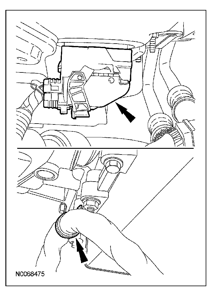 10. Remove the nut, rotate the transmission fluid filler tube counterclockwise 90 degrees and remove the transmission fluid filler tube.