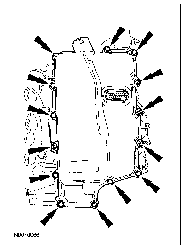 2. CAUTION: Inspect the 20-pin solenoid body connector seal to make sure that the seal is on the inside of the main control cover. Transmission fluid leak will occur.