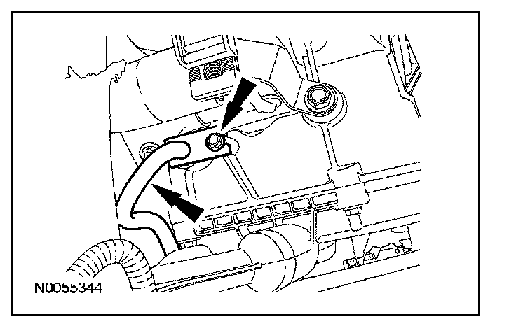 4. Position the transmission fluid cooler thermal bypass valve and transmission fluid cooler tube assembly in place and install the 2 nuts.
