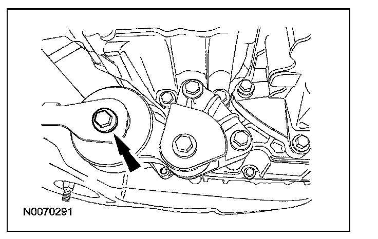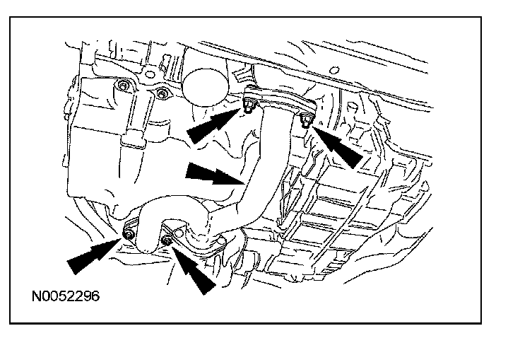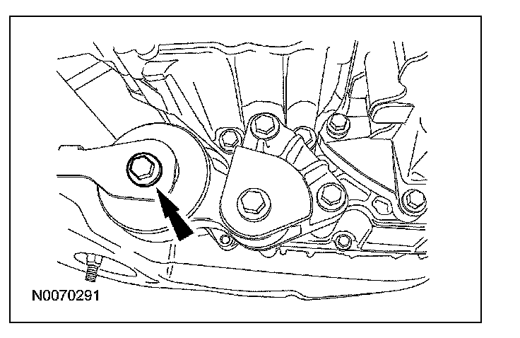 Position a floor jack and the special tool under the oil pan and raise the floor jack high enough to release the pressure on the transaxle support insulator.