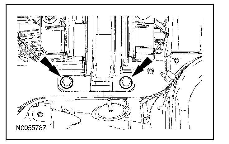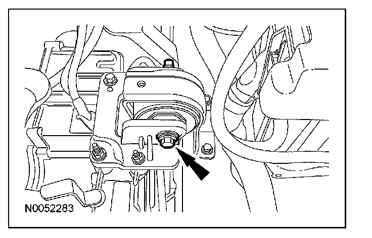 15. Tighten the engine roll restrictor-to-subframe through bolt.