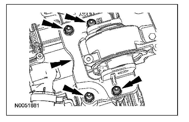 14. CAUTION: The special tool must be carefully aligned to the mounting bosses on the oil pan. Failure to follow these instructions may result in damage to the oil pan.