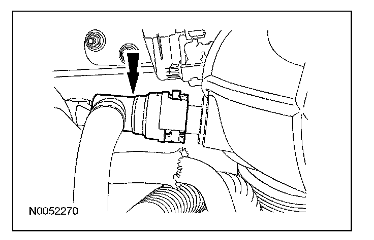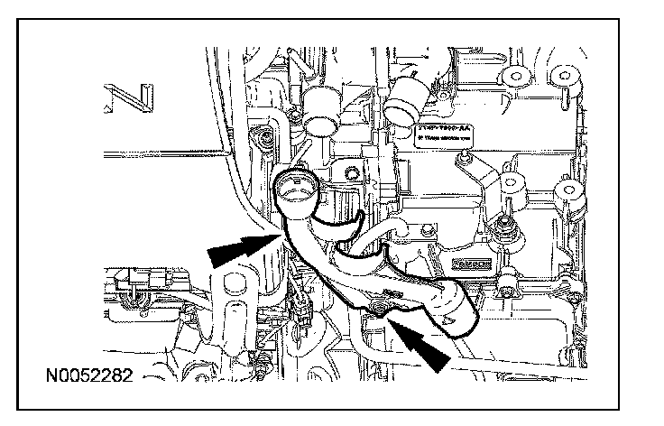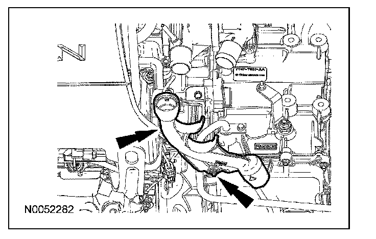 8. Remove the coolant hoses from the transmission fluid filler tube.