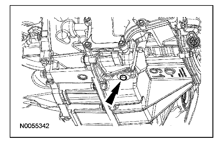 6. Remove the transmission fluid drain plug and allow the transmission fluid to drain.