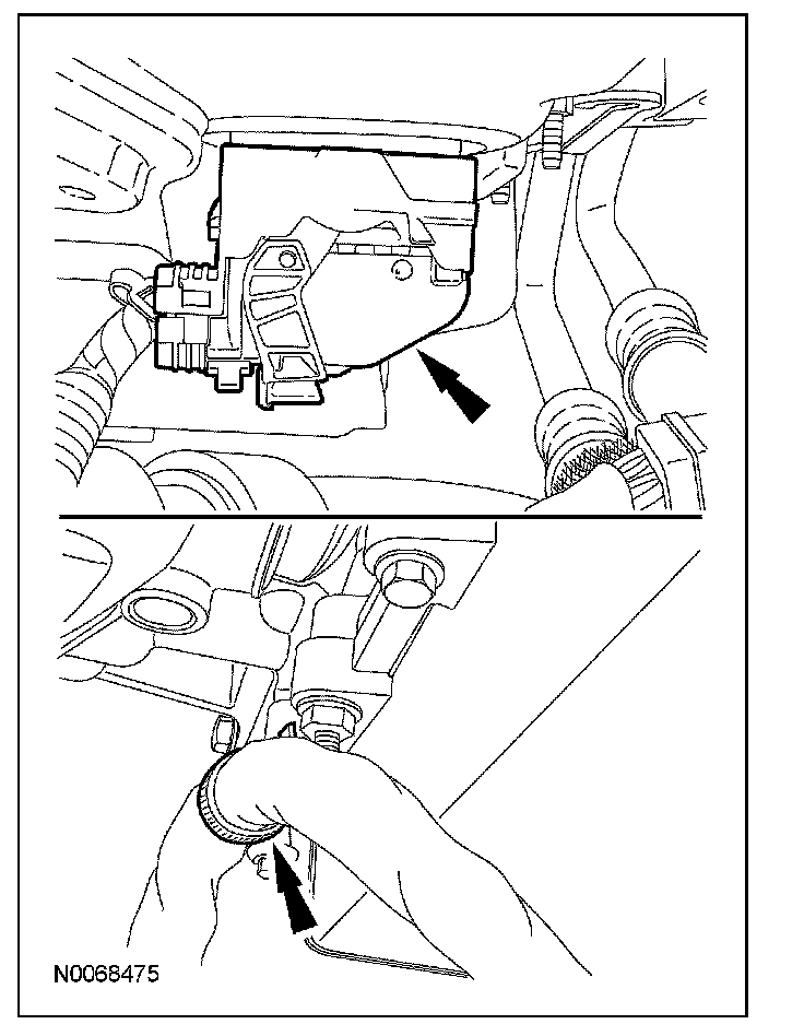 Remove the solenoid body filter assembly by pulling it straight up from the alignment tabs. Discard the filter.