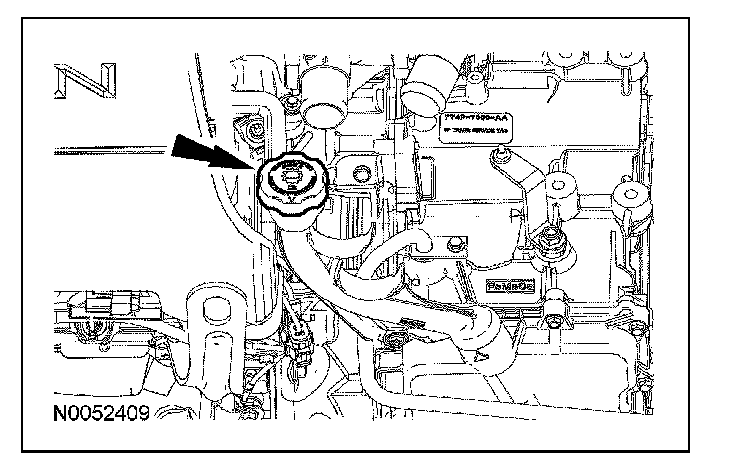 20. Route the coolant hoses in the transmission fluid filler tube.
