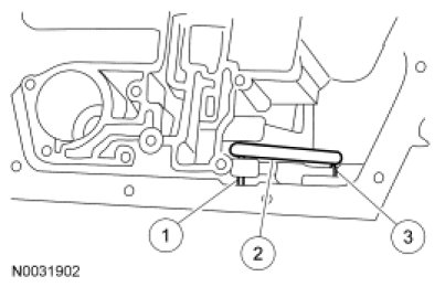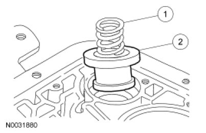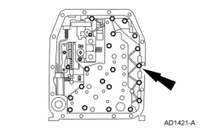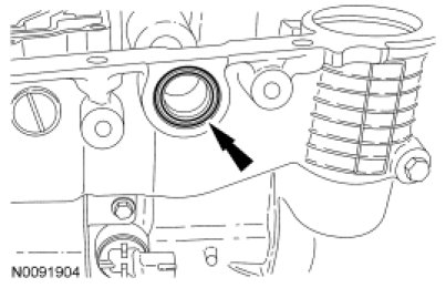 5. NOTICE: If installing a new transmission fluid filter and the grommet remains in the main control bore, carefully use a small screwdriver to remove the grommet. Use care not to damage the main control bore.