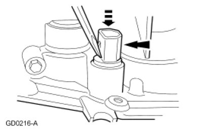 16. NOTICE: Use care not to damage the manual control lever shaft bore. If the bore is damaged, the new seal may leak.