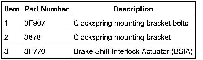2. Remove the Supplemental Restraint System (SRS) steering column clockspring. For additional information, refer to Air Bag Systems.